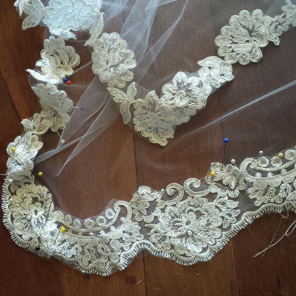 Then, it’s dress up time! The client gets to try on headpieces, veils, and capes, as well as explore sample laces, fabrics, crystals, pearls, feathers, and more. At that point, I’m ready to roughly ‘build’ the headpiece so she can see exactly what it will look like, and I draw a provisional sketch.